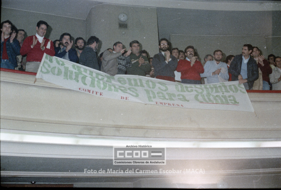 María del Carmen Escobar, MACA, nació en Ayamonte (Huelva) el 5 de diciembre de 1952. Siendo niña su familia fijó la residencia en Sevilla, ciudad en la que viviría el resto de su vida. En 1969 comenzó a trabajar en el Galerías Preciados, donde comenzó su actividad sindical. En 1976 ingresa en las aún clandestinas CCOO de Sevilla. Tras la legalización del sindicato, en abril de 1977, fue contratada por la Unión Provincial de Sevilla. Sus reportajes fotográficos enriquecieron Realidad, periódico emblemático de las CCOO de Sevilla, así como otros órganos de expresión del sindicato. Tanto los conflictos laborales, como la frenética actividad que desarrollaron los movimientos sociales durante los años de la Transición fueron recogidos por la cámara de Maca, por lo que su obra constituye un indispensable repositorio de la memoria gráfica obrera y militante de esos años. Mostró especial interés en fotografiar los actos promovidos por el incipiente movimiento feminista, así como, por destacar la participación de las mujeres en la vida pública. Desde entonces y hasta su temprana muerte en abril de 2013, Maca trabajó para CCOO y para otras entidades, como RTVA, manteniendo siempre un fuerte compromiso con la clase trabajadora. Su fondo fotográfico, formado por más de 20.000 negativos, se conserva en el Archivo Histórico de CCOO de Andalucía y está disponible para su consulta pública