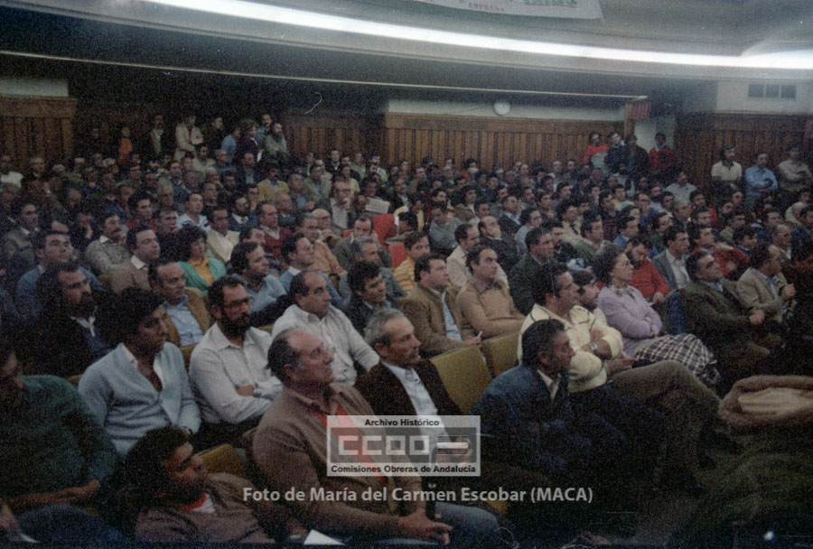 María del Carmen Escobar, MACA, nació en Ayamonte (Huelva) el 5 de diciembre de 1952. Siendo niña su familia fijó la residencia en Sevilla, ciudad en la que viviría el resto de su vida. En 1969 comenzó a trabajar en el Galerías Preciados, donde comenzó su actividad sindical. En 1976 ingresa en las aún clandestinas CCOO de Sevilla. Tras la legalización del sindicato, en abril de 1977, fue contratada por la Unión Provincial de Sevilla. Sus reportajes fotográficos enriquecieron Realidad, periódico emblemático de las CCOO de Sevilla, así como otros órganos de expresión del sindicato. Tanto los conflictos laborales, como la frenética actividad que desarrollaron los movimientos sociales durante los años de la Transición fueron recogidos por la cámara de Maca, por lo que su obra constituye un indispensable repositorio de la memoria gráfica obrera y militante de esos años. Mostró especial interés en fotografiar los actos promovidos por el incipiente movimiento feminista, así como, por destacar la participación de las mujeres en la vida pública. Desde entonces y hasta su temprana muerte en abril de 2013, Maca trabajó para CCOO y para otras entidades, como RTVA, manteniendo siempre un fuerte compromiso con la clase trabajadora. Su fondo fotográfico, formado por más de 20.000 negativos, se conserva en el Archivo Histórico de CCOO de Andalucía y está disponible para su consulta pública