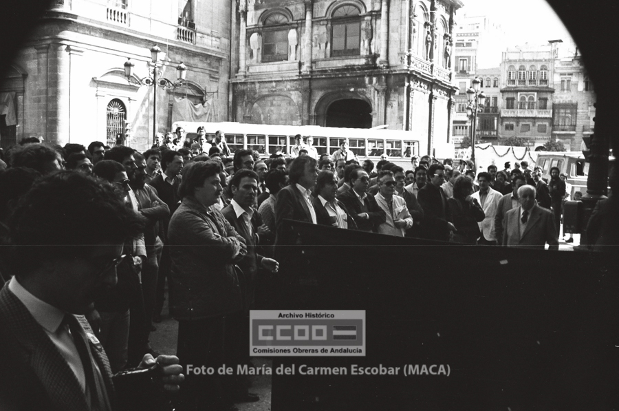 María del Carmen Escobar, MACA, nació en Ayamonte (Huelva) el 5 de diciembre de 1952. Siendo niña su familia fijó la residencia en Sevilla, ciudad en la que viviría el resto de su vida. En 1969 comenzó a trabajar en el Galerías Preciados, donde comenzó su actividad sindical. En 1976 ingresa en las aún clandestinas CCOO de Sevilla. Tras la legalización del sindicato, en abril de 1977, fue contratada por la Unión Provincial de Sevilla. Sus reportajes fotográficos enriquecieron Realidad, periódico emblemático de las CCOO de Sevilla, así como otros órganos de expresión del sindicato. Tanto los conflictos laborales, como la frenética actividad que desarrollaron los movimientos sociales durante los años de la Transición fueron recogidos por la cámara de Maca, por lo que su obra constituye un indispensable repositorio de la memoria gráfica obrera y militante de esos años. Mostró especial interés en fotografiar los actos promovidos por el incipiente movimiento feminista, así como, por destacar la participación de las mujeres en la vida pública. Desde entonces y hasta su temprana muerte en abril de 2013, Maca trabajó para CCOO y para otras entidades, como RTVA, manteniendo siempre un fuerte compromiso con la clase trabajadora. Su fondo fotográfico, formado por más de 20.000 negativos, se conserva en el Archivo Histórico de CCOO de Andalucía y está disponible para su consulta pública