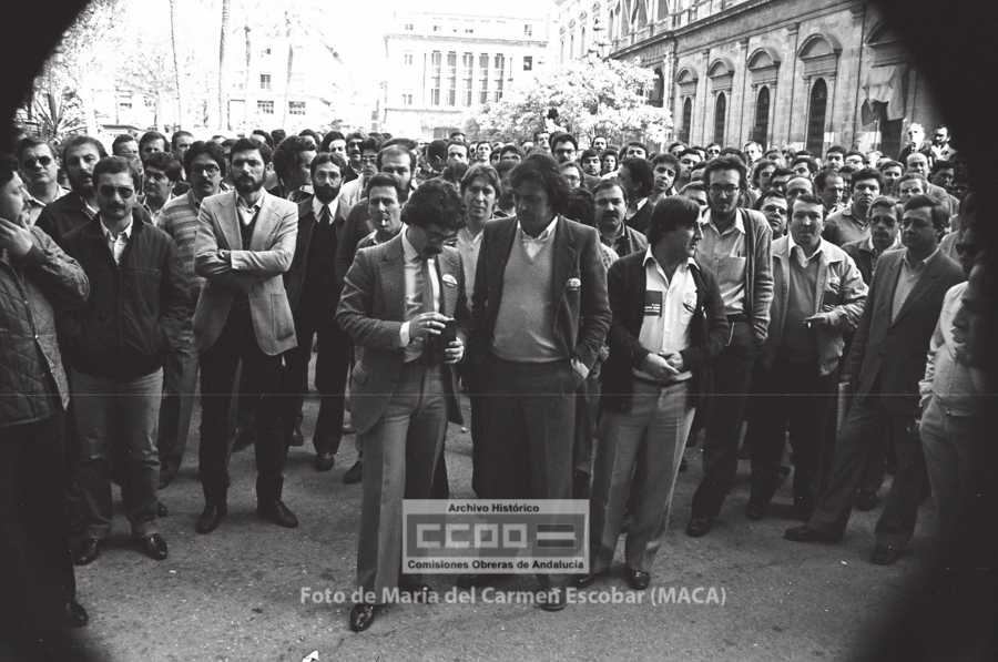María del Carmen Escobar, MACA, nació en Ayamonte (Huelva) el 5 de diciembre de 1952. Siendo niña su familia fijó la residencia en Sevilla, ciudad en la que viviría el resto de su vida. En 1969 comenzó a trabajar en el Galerías Preciados, donde comenzó su actividad sindical. En 1976 ingresa en las aún clandestinas CCOO de Sevilla. Tras la legalización del sindicato, en abril de 1977, fue contratada por la Unión Provincial de Sevilla. Sus reportajes fotográficos enriquecieron Realidad, periódico emblemático de las CCOO de Sevilla, así como otros órganos de expresión del sindicato. Tanto los conflictos laborales, como la frenética actividad que desarrollaron los movimientos sociales durante los años de la Transición fueron recogidos por la cámara de Maca, por lo que su obra constituye un indispensable repositorio de la memoria gráfica obrera y militante de esos años. Mostró especial interés en fotografiar los actos promovidos por el incipiente movimiento feminista, así como, por destacar la participación de las mujeres en la vida pública. Desde entonces y hasta su temprana muerte en abril de 2013, Maca trabajó para CCOO y para otras entidades, como RTVA, manteniendo siempre un fuerte compromiso con la clase trabajadora. Su fondo fotográfico, formado por más de 20.000 negativos, se conserva en el Archivo Histórico de CCOO de Andalucía y está disponible para su consulta pública