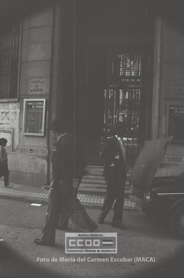 Asamblea de trabajadores en la puerta de una entidad bancaria durante la huelga general del sector – 20