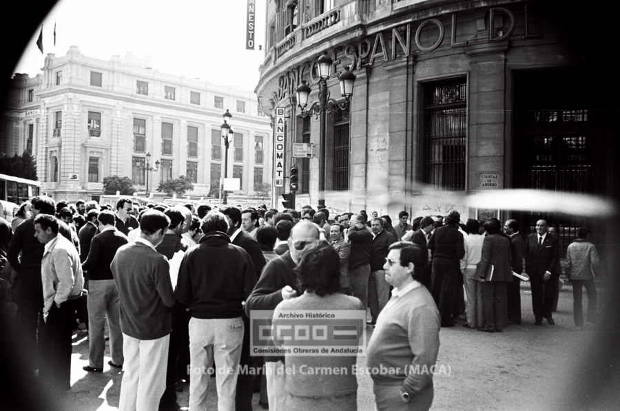 Asamblea de trabajadores en la puerta de una entidad bancaria durante la huelga general del sector – 22