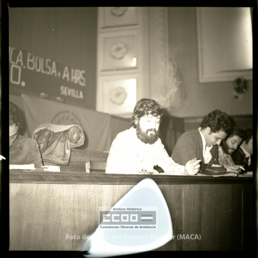 María del Carmen Escobar, MACA, nació en Ayamonte (Huelva) el 5 de diciembre de 1952. Siendo niña su familia fijó la residencia en Sevilla, ciudad en la que viviría el resto de su vida. En 1969 comenzó a trabajar en el Galerías Preciados, donde comenzó su actividad sindical. En 1976 ingresa en las aún clandestinas CCOO de Sevilla. Tras la legalización del sindicato, en abril de 1977, fue contratada por la Unión Provincial de Sevilla. Sus reportajes fotográficos enriquecieron Realidad, periódico emblemático de las CCOO de Sevilla, así como otros órganos de expresión del sindicato. Tanto los conflictos laborales, como la frenética actividad que desarrollaron los movimientos sociales durante los años de la Transición fueron recogidos por la cámara de Maca, por lo que su obra constituye un indispensable repositorio de la memoria gráfica obrera y militante de esos años. Mostró especial interés en fotografiar los actos promovidos por el incipiente movimiento feminista, así como, por destacar la participación de las mujeres en la vida pública. Desde entonces y hasta su temprana muerte en abril de 2013, Maca trabajó para CCOO y para otras entidades, como RTVA, manteniendo siempre un fuerte compromiso con la clase trabajadora. Su fondo fotográfico, formado por más de 20.000 negativos, se conserva en el Archivo Histórico de CCOO de Andalucía y está disponible para su consulta pública