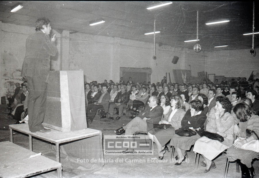 María del Carmen Escobar, MACA, nació en Ayamonte (Huelva) el 5 de diciembre de 1952. Siendo niña su familia fijó la residencia en Sevilla, ciudad en la que viviría el resto de su vida. En 1969 comenzó a trabajar en el Galerías Preciados, donde comenzó su actividad sindical. En 1976 ingresa en las aún clandestinas CCOO de Sevilla. Tras la legalización del sindicato, en abril de 1977, fue contratada por la Unión Provincial de Sevilla. Sus reportajes fotográficos enriquecieron Realidad, periódico emblemático de las CCOO de Sevilla, así como otros órganos de expresión del sindicato. Tanto los conflictos laborales, como la frenética actividad que desarrollaron los movimientos sociales durante los años de la Transición fueron recogidos por la cámara de Maca, por lo que su obra constituye un indispensable repositorio de la memoria gráfica obrera y militante de esos años. Mostró especial interés en fotografiar los actos promovidos por el incipiente movimiento feminista, así como, por destacar la participación de las mujeres en la vida pública. Desde entonces y hasta su temprana muerte en abril de 2013, Maca trabajó para CCOO y para otras entidades, como RTVA, manteniendo siempre un fuerte compromiso con la clase trabajadora. Su fondo fotográfico, formado por más de 20.000 negativos, se conserva en el Archivo Histórico de CCOO de Andalucía y está disponible para su consulta pública