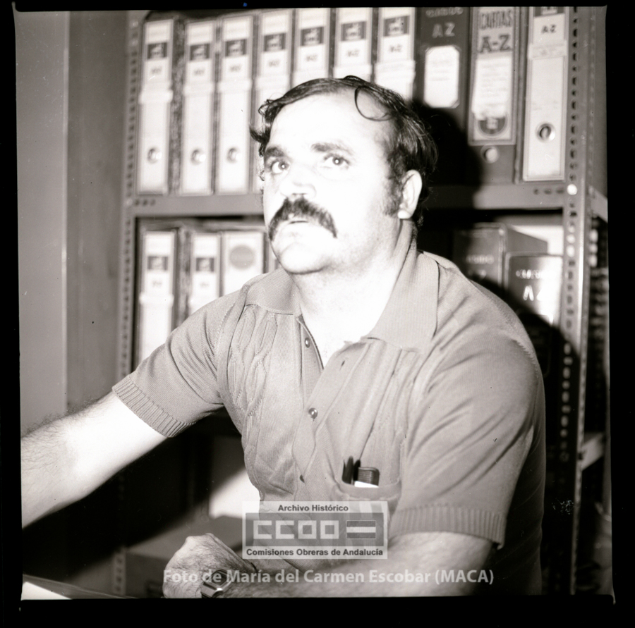Carmelo Acuña en una mesa de trabajo en la sede de CCOO de Sevilla – 01