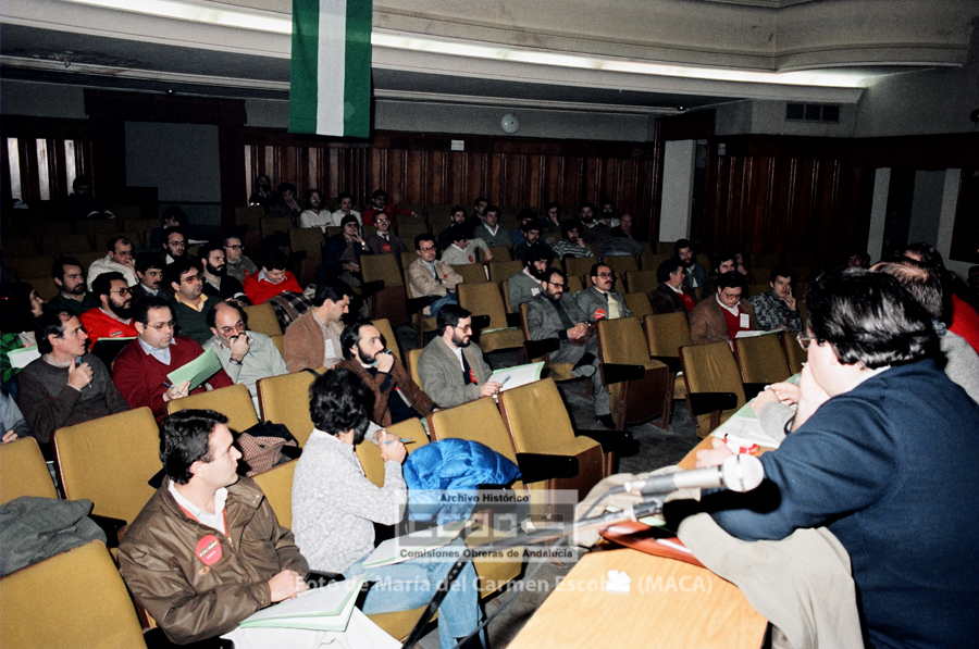María del Carmen Escobar, MACA, nació en Ayamonte (Huelva) el 5 de diciembre de 1952. Siendo niña su familia fijó la residencia en Sevilla, ciudad en la que viviría el resto de su vida. En 1969 comenzó a trabajar en el Galerías Preciados, donde comenzó su actividad sindical. En 1976 ingresa en las aún clandestinas CCOO de Sevilla. Tras la legalización del sindicato, en abril de 1977, fue contratada por la Unión Provincial de Sevilla. Sus reportajes fotográficos enriquecieron Realidad, periódico emblemático de las CCOO de Sevilla, así como otros órganos de expresión del sindicato. Tanto los conflictos laborales, como la frenética actividad que desarrollaron los movimientos sociales durante los años de la Transición fueron recogidos por la cámara de Maca, por lo que su obra constituye un indispensable repositorio de la memoria gráfica obrera y militante de esos años. Mostró especial interés en fotografiar los actos promovidos por el incipiente movimiento feminista, así como, por destacar la participación de las mujeres en la vida pública. Desde entonces y hasta su temprana muerte en abril de 2013, Maca trabajó para CCOO y para otras entidades, como RTVA, manteniendo siempre un fuerte compromiso con la clase trabajadora. Su fondo fotográfico, formado por más de 20.000 negativos, se conserva en el Archivo Histórico de CCOO de Andalucía y está disponible para su consulta pública