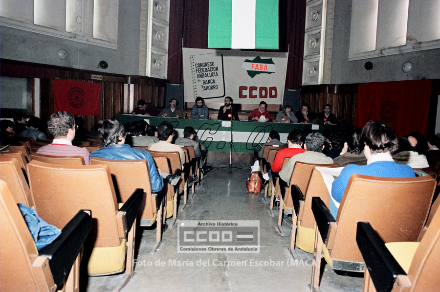 María del Carmen Escobar, MACA, nació en Ayamonte (Huelva) el 5 de diciembre de 1952. Siendo niña su familia fijó la residencia en Sevilla, ciudad en la que viviría el resto de su vida. En 1969 comenzó a trabajar en el Galerías Preciados, donde comenzó su actividad sindical. En 1976 ingresa en las aún clandestinas CCOO de Sevilla. Tras la legalización del sindicato, en abril de 1977, fue contratada por la Unión Provincial de Sevilla. Sus reportajes fotográficos enriquecieron Realidad, periódico emblemático de las CCOO de Sevilla, así como otros órganos de expresión del sindicato. Tanto los conflictos laborales, como la frenética actividad que desarrollaron los movimientos sociales durante los años de la Transición fueron recogidos por la cámara de Maca, por lo que su obra constituye un indispensable repositorio de la memoria gráfica obrera y militante de esos años. Mostró especial interés en fotografiar los actos promovidos por el incipiente movimiento feminista, así como, por destacar la participación de las mujeres en la vida pública. Desde entonces y hasta su temprana muerte en abril de 2013, Maca trabajó para CCOO y para otras entidades, como RTVA, manteniendo siempre un fuerte compromiso con la clase trabajadora. Su fondo fotográfico, formado por más de 20.000 negativos, se conserva en el Archivo Histórico de CCOO de Andalucía y está disponible para su consulta pública