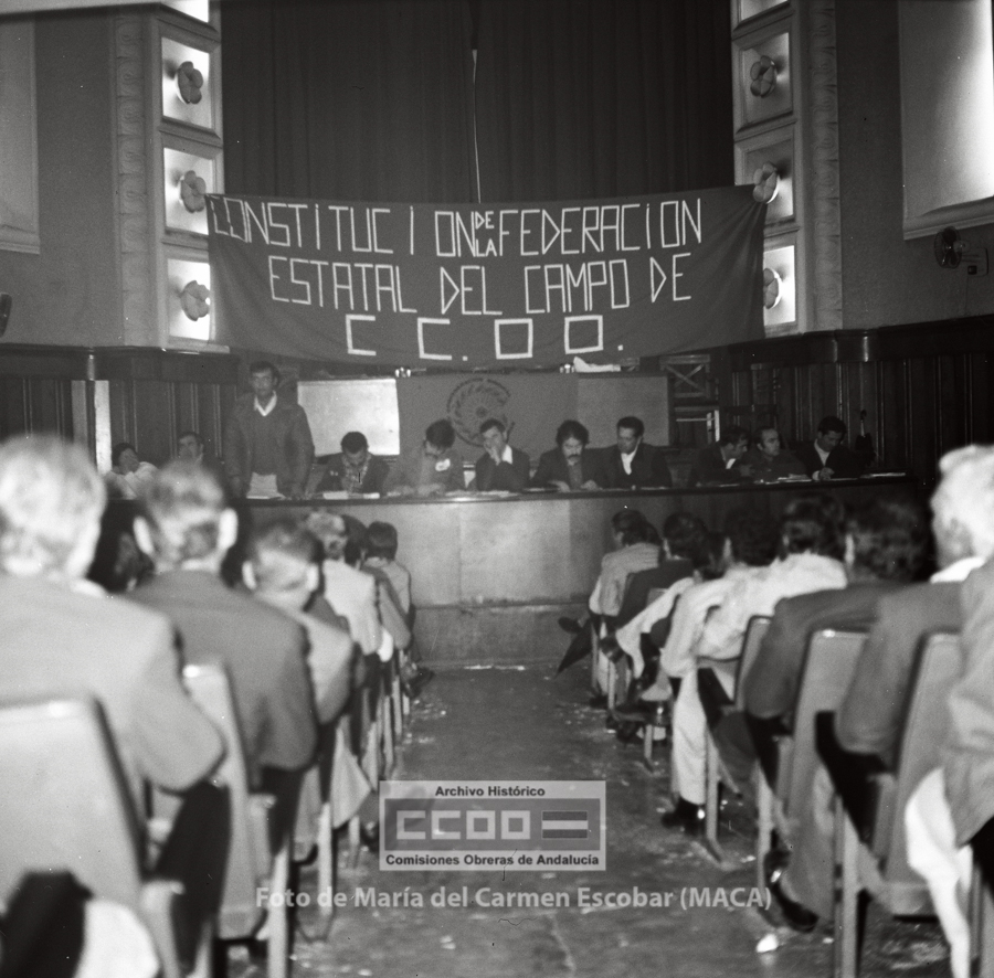 María del Carmen Escobar, MACA, nació en Ayamonte (Huelva) el 5 de diciembre de 1952. Siendo niña su familia fijó la residencia en Sevilla, ciudad en la que viviría el resto de su vida. En 1969 comenzó a trabajar en el Galerías Preciados, donde comenzó su actividad sindical. En 1976 ingresa en las aún clandestinas CCOO de Sevilla. Tras la legalización del sindicato, en abril de 1977, fue contratada por la Unión Provincial de Sevilla. Sus reportajes fotográficos enriquecieron Realidad, periódico emblemático de las CCOO de Sevilla, así como otros órganos de expresión del sindicato. Tanto los conflictos laborales, como la frenética actividad que desarrollaron los movimientos sociales durante los años de la Transición fueron recogidos por la cámara de Maca, por lo que su obra constituye un indispensable repositorio de la memoria gráfica obrera y militante de esos años. Mostró especial interés en fotografiar los actos promovidos por el incipiente movimiento feminista, así como, por destacar la participación de las mujeres en la vida pública. Desde entonces y hasta su temprana muerte en abril de 2013, Maca trabajó para CCOO y para otras entidades, como RTVA, manteniendo siempre un fuerte compromiso con la clase trabajadora. Su fondo fotográfico, formado por más de 20.000 negativos, se conserva en el Archivo Histórico de CCOO de Andalucía y está disponible para su consulta pública