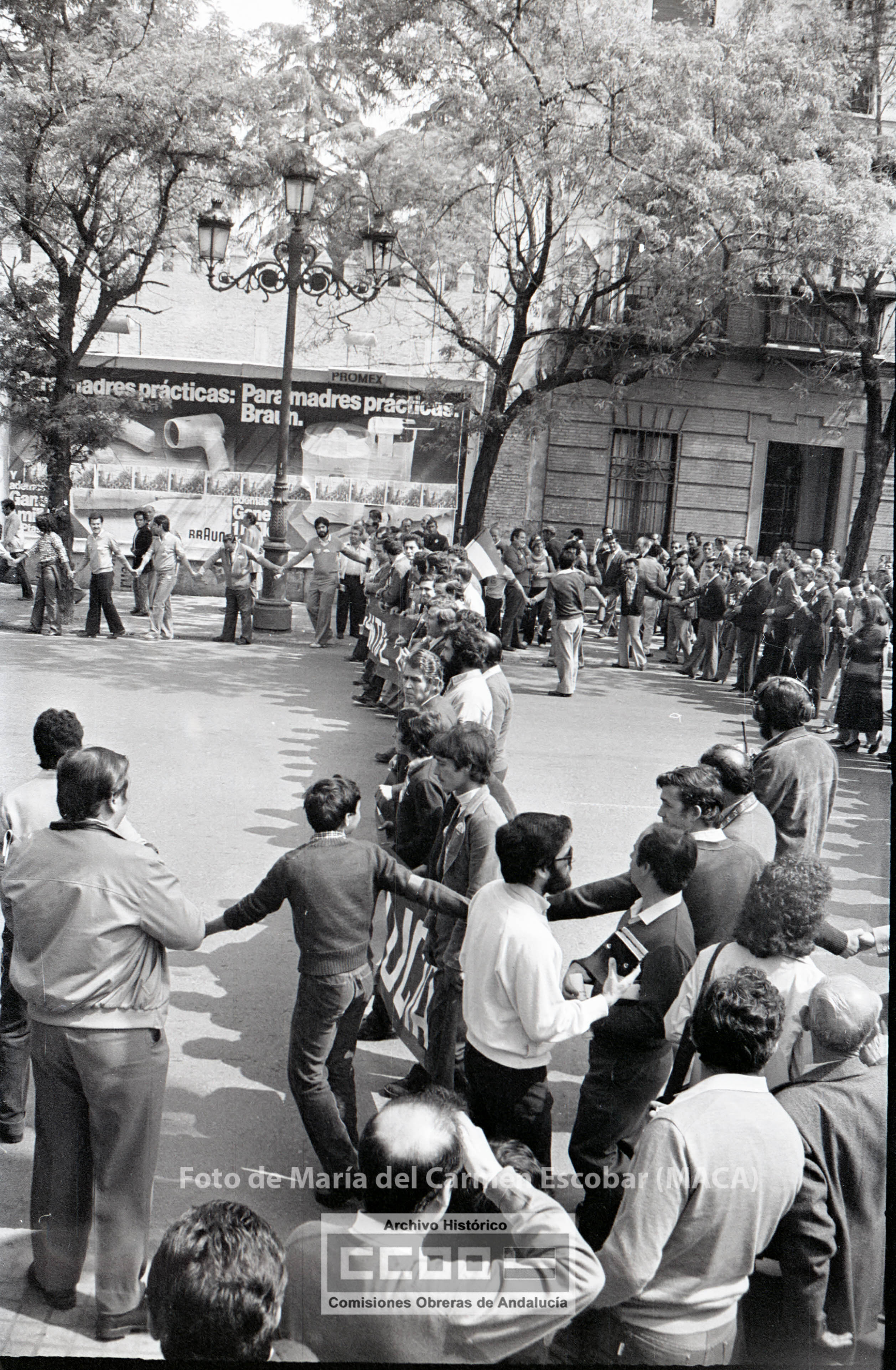 María del Carmen Escobar, MACA, nació en Ayamonte (Huelva) el 5 de diciembre de 1952. Siendo niña su familia fijó la residencia en Sevilla, ciudad en la que viviría el resto de su vida. En 1969 comenzó a trabajar en el Galerías Preciados, donde comenzó su actividad sindical. En 1976 ingresa en las aún clandestinas CCOO de Sevilla. Tras la legalización del sindicato, en abril de 1977, fue contratada por la Unión Provincial de Sevilla. Sus reportajes fotográficos enriquecieron Realidad, periódico emblemático de las CCOO de Sevilla, así como otros órganos de expresión del sindicato. Tanto los conflictos laborales, como la frenética actividad que desarrollaron los movimientos sociales durante los años de la Transición fueron recogidos por la cámara de Maca, por lo que su obra constituye un indispensable repositorio de la memoria gráfica obrera y militante de esos años. Mostró especial interés en fotografiar los actos promovidos por el incipiente movimiento feminista, así como, por destacar la participación de las mujeres en la vida pública. Desde entonces y hasta su temprana muerte en abril de 2013, Maca trabajó para CCOO y para otras entidades, como RTVA, manteniendo siempre un fuerte compromiso con la clase trabajadora. Su fondo fotográfico, formado por más de 20.000 negativos, se conserva en el Archivo Histórico de CCOO de Andalucía y está disponible para su consulta pública