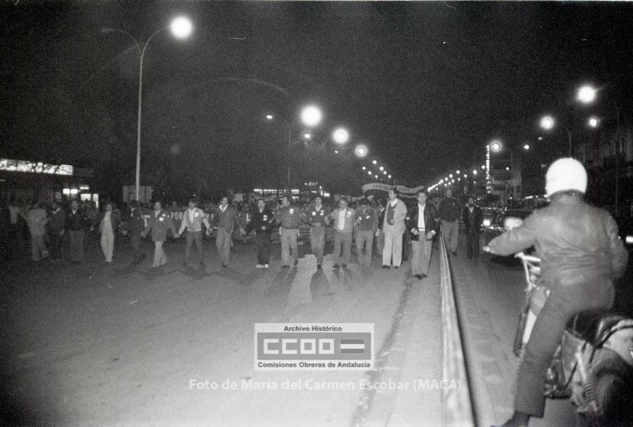 María del Carmen Escobar, MACA, nació en Ayamonte (Huelva) el 5 de diciembre de 1952. Siendo niña su familia fijó la residencia en Sevilla, ciudad en la que viviría el resto de su vida. En 1969 comenzó a trabajar en el Galerías Preciados, donde comenzó su actividad sindical. En 1976 ingresa en las aún clandestinas CCOO de Sevilla. Tras la legalización del sindicato, en abril de 1977, fue contratada por la Unión Provincial de Sevilla. Sus reportajes fotográficos enriquecieron Realidad, periódico emblemático de las CCOO de Sevilla, así como otros órganos de expresión del sindicato. Tanto los conflictos laborales, como la frenética actividad que desarrollaron los movimientos sociales durante los años de la Transición fueron recogidos por la cámara de Maca, por lo que su obra constituye un indispensable repositorio de la memoria gráfica obrera y militante de esos años. Mostró especial interés en fotografiar los actos promovidos por el incipiente movimiento feminista, así como, por destacar la participación de las mujeres en la vida pública. Desde entonces y hasta su temprana muerte en abril de 2013, Maca trabajó para CCOO y para otras entidades, como RTVA, manteniendo siempre un fuerte compromiso con la clase trabajadora. Su fondo fotográfico, formado por más de 20.000 negativos, se conserva en el Archivo Histórico de CCOO de Andalucía y está disponible para su consulta pública
