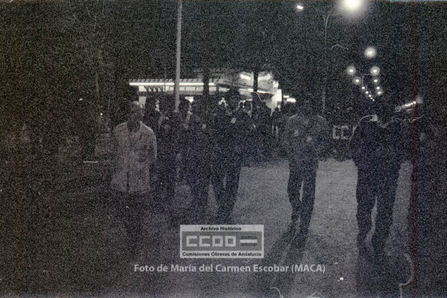María del Carmen Escobar, MACA, nació en Ayamonte (Huelva) el 5 de diciembre de 1952. Siendo niña su familia fijó la residencia en Sevilla, ciudad en la que viviría el resto de su vida. En 1969 comenzó a trabajar en el Galerías Preciados, donde comenzó su actividad sindical. En 1976 ingresa en las aún clandestinas CCOO de Sevilla. Tras la legalización del sindicato, en abril de 1977, fue contratada por la Unión Provincial de Sevilla. Sus reportajes fotográficos enriquecieron Realidad, periódico emblemático de las CCOO de Sevilla, así como otros órganos de expresión del sindicato. Tanto los conflictos laborales, como la frenética actividad que desarrollaron los movimientos sociales durante los años de la Transición fueron recogidos por la cámara de Maca, por lo que su obra constituye un indispensable repositorio de la memoria gráfica obrera y militante de esos años. Mostró especial interés en fotografiar los actos promovidos por el incipiente movimiento feminista, así como, por destacar la participación de las mujeres en la vida pública. Desde entonces y hasta su temprana muerte en abril de 2013, Maca trabajó para CCOO y para otras entidades, como RTVA, manteniendo siempre un fuerte compromiso con la clase trabajadora. Su fondo fotográfico, formado por más de 20.000 negativos, se conserva en el Archivo Histórico de CCOO de Andalucía y está disponible para su consulta pública