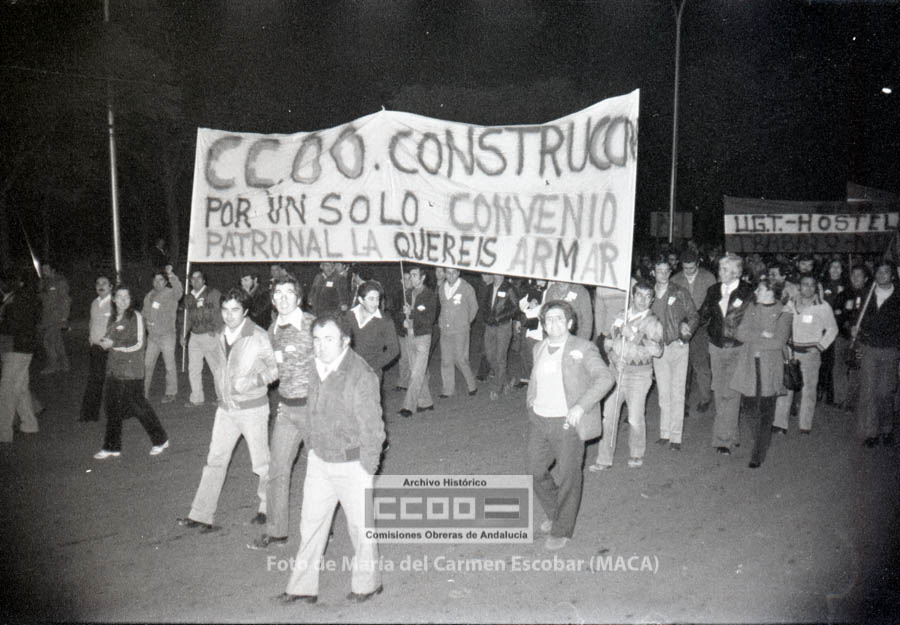 María del Carmen Escobar, MACA, nació en Ayamonte (Huelva) el 5 de diciembre de 1952. Siendo niña su familia fijó la residencia en Sevilla, ciudad en la que viviría el resto de su vida. En 1969 comenzó a trabajar en el Galerías Preciados, donde comenzó su actividad sindical. En 1976 ingresa en las aún clandestinas CCOO de Sevilla. Tras la legalización del sindicato, en abril de 1977, fue contratada por la Unión Provincial de Sevilla. Sus reportajes fotográficos enriquecieron Realidad, periódico emblemático de las CCOO de Sevilla, así como otros órganos de expresión del sindicato. Tanto los conflictos laborales, como la frenética actividad que desarrollaron los movimientos sociales durante los años de la Transición fueron recogidos por la cámara de Maca, por lo que su obra constituye un indispensable repositorio de la memoria gráfica obrera y militante de esos años. Mostró especial interés en fotografiar los actos promovidos por el incipiente movimiento feminista, así como, por destacar la participación de las mujeres en la vida pública. Desde entonces y hasta su temprana muerte en abril de 2013, Maca trabajó para CCOO y para otras entidades, como RTVA, manteniendo siempre un fuerte compromiso con la clase trabajadora. Su fondo fotográfico, formado por más de 20.000 negativos, se conserva en el Archivo Histórico de CCOO de Andalucía y está disponible para su consulta pública