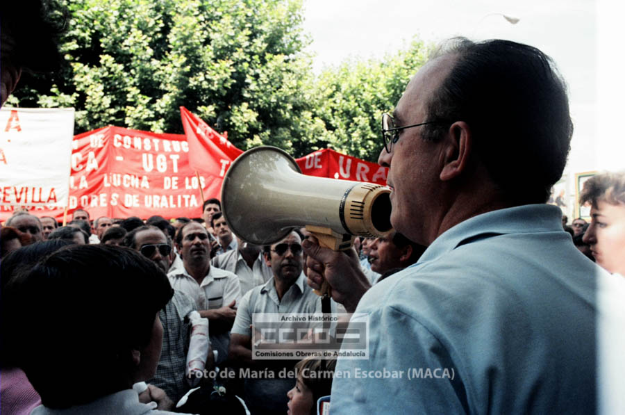 María del Carmen Escobar, MACA, nació en Ayamonte (Huelva) el 5 de diciembre de 1952. Siendo niña su familia fijó la residencia en Sevilla, ciudad en la que viviría el resto de su vida. En 1969 comenzó a trabajar en el Galerías Preciados, donde comenzó su actividad sindical. En 1976 ingresa en las aún clandestinas CCOO de Sevilla. Tras la legalización del sindicato, en abril de 1977, fue contratada por la Unión Provincial de Sevilla. Sus reportajes fotográficos enriquecieron Realidad, periódico emblemático de las CCOO de Sevilla, así como otros órganos de expresión del sindicato. Tanto los conflictos laborales, como la frenética actividad que desarrollaron los movimientos sociales durante los años de la Transición fueron recogidos por la cámara de Maca, por lo que su obra constituye un indispensable repositorio de la memoria gráfica obrera y militante de esos años. Mostró especial interés en fotografiar los actos promovidos por el incipiente movimiento feminista, así como, por destacar la participación de las mujeres en la vida pública. Desde entonces y hasta su temprana muerte en abril de 2013, Maca trabajó para CCOO y para otras entidades, como RTVA, manteniendo siempre un fuerte compromiso con la clase trabajadora. Su fondo fotográfico, formado por más de 20.000 negativos, se conserva en el Archivo Histórico de CCOO de Andalucía y está disponible para su consulta pública