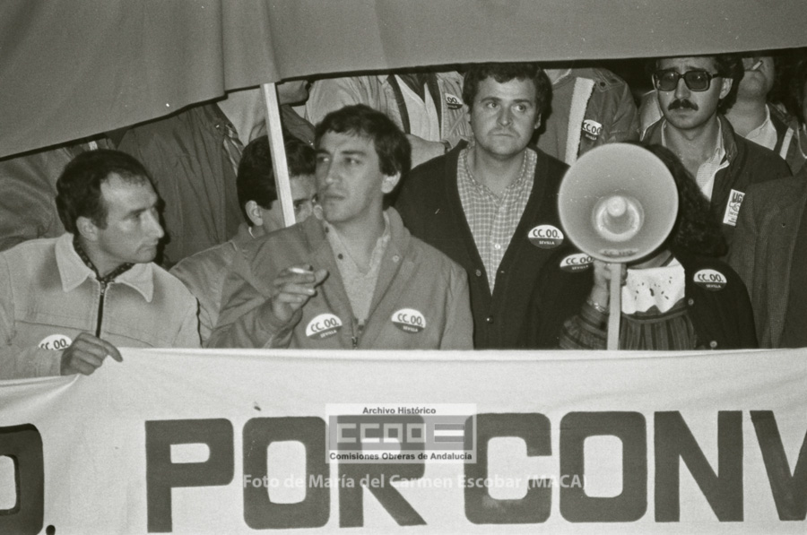 María del Carmen Escobar, MACA, nació en Ayamonte (Huelva) el 5 de diciembre de 1952. Siendo niña su familia fijó la residencia en Sevilla, ciudad en la que viviría el resto de su vida. En 1969 comenzó a trabajar en el Galerías Preciados, donde comenzó su actividad sindical. En 1976 ingresa en las aún clandestinas CCOO de Sevilla. Tras la legalización del sindicato, en abril de 1977, fue contratada por la Unión Provincial de Sevilla. Sus reportajes fotográficos enriquecieron Realidad, periódico emblemático de las CCOO de Sevilla, así como otros órganos de expresión del sindicato. Tanto los conflictos laborales, como la frenética actividad que desarrollaron los movimientos sociales durante los años de la Transición fueron recogidos por la cámara de Maca, por lo que su obra constituye un indispensable repositorio de la memoria gráfica obrera y militante de esos años. Mostró especial interés en fotografiar los actos promovidos por el incipiente movimiento feminista, así como, por destacar la participación de las mujeres en la vida pública. Desde entonces y hasta su temprana muerte en abril de 2013, Maca trabajó para CCOO y para otras entidades, como RTVA, manteniendo siempre un fuerte compromiso con la clase trabajadora. Su fondo fotográfico, formado por más de 20.000 negativos, se conserva en el Archivo Histórico de CCOO de Andalucía y está disponible para su consulta pública