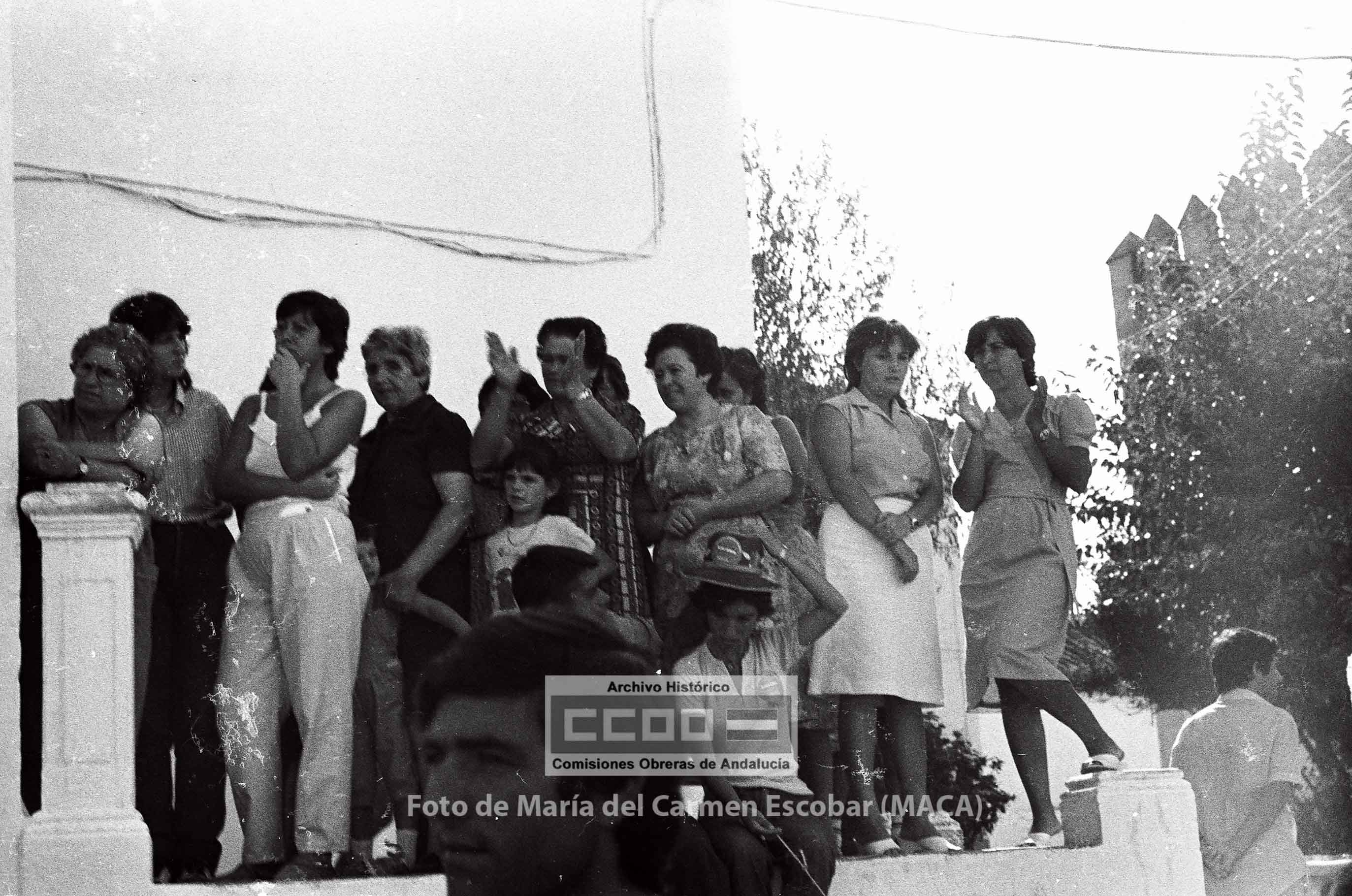 María del Carmen Escobar, MACA, nació en Ayamonte (Huelva) el 5 de diciembre de 1952. Siendo niña su familia fijó la residencia en Sevilla, ciudad en la que viviría el resto de su vida. En 1969 comenzó a trabajar en el Galerías Preciados, donde comenzó su actividad sindical. En 1976 ingresa en las aún clandestinas CCOO de Sevilla. Tras la legalización del sindicato, en abril de 1977, fue contratada por la Unión Provincial de Sevilla. Sus reportajes fotográficos enriquecieron Realidad, periódico emblemático de las CCOO de Sevilla, así como otros órganos de expresión del sindicato. Tanto los conflictos laborales, como la frenética actividad que desarrollaron los movimientos sociales durante los años de la Transición fueron recogidos por la cámara de Maca, por lo que su obra constituye un indispensable repositorio de la memoria gráfica obrera y militante de esos años. Mostró especial interés en fotografiar los actos promovidos por el incipiente movimiento feminista, así como, por destacar la participación de las mujeres en la vida pública. Desde entonces y hasta su temprana muerte en abril de 2013, Maca trabajó para CCOO y para otras entidades, como RTVA, manteniendo siempre un fuerte compromiso con la clase trabajadora. Su fondo fotográfico, formado por más de 20.000 negativos, se conserva en el Archivo Histórico de CCOO de Andalucía y está disponible para su consulta pública