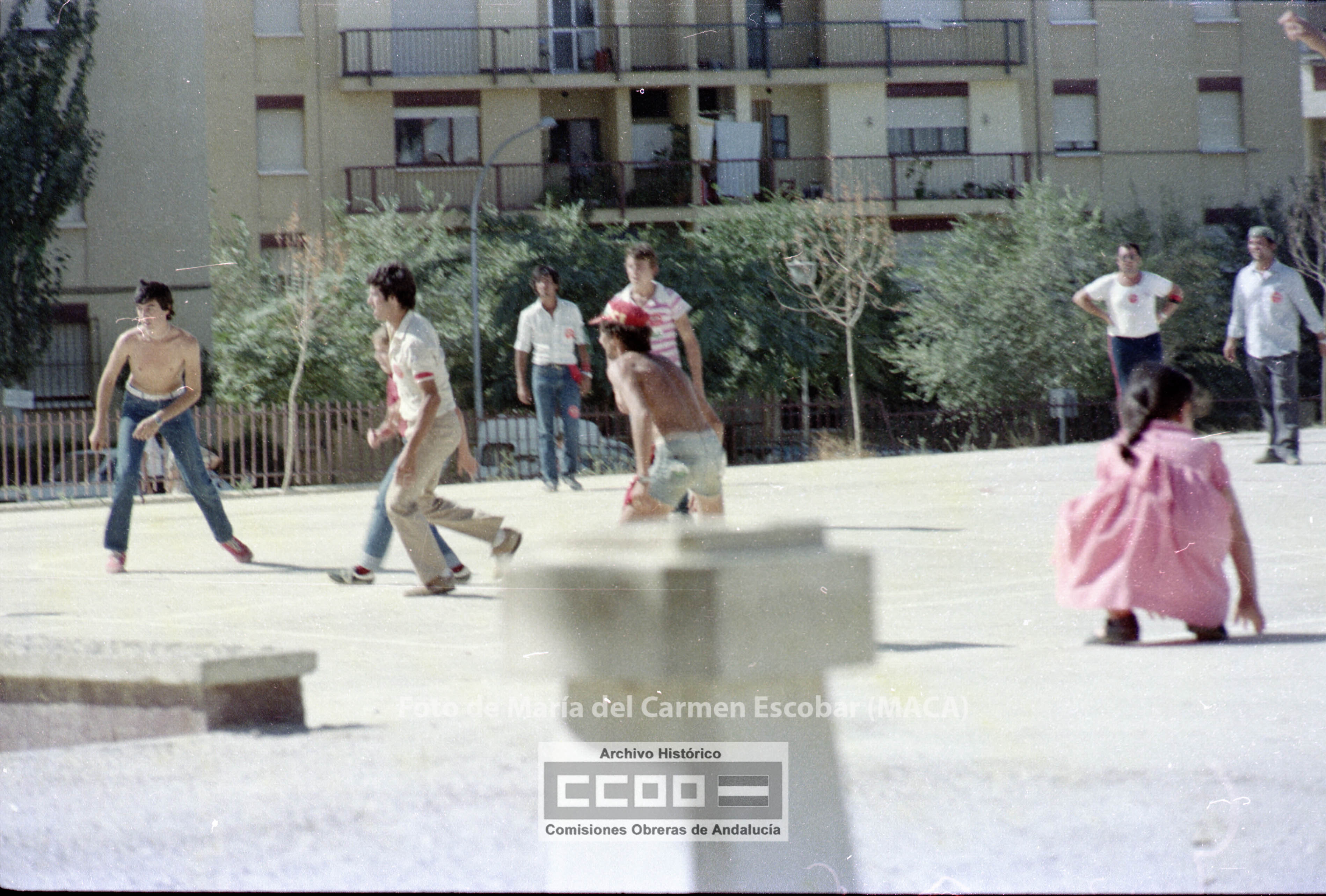 María del Carmen Escobar, MACA, nació en Ayamonte (Huelva) el 5 de diciembre de 1952. Siendo niña su familia fijó la residencia en Sevilla, ciudad en la que viviría el resto de su vida. En 1969 comenzó a trabajar en el Galerías Preciados, donde comenzó su actividad sindical. En 1976 ingresa en las aún clandestinas CCOO de Sevilla. Tras la legalización del sindicato, en abril de 1977, fue contratada por la Unión Provincial de Sevilla. Sus reportajes fotográficos enriquecieron Realidad, periódico emblemático de las CCOO de Sevilla, así como otros órganos de expresión del sindicato. Tanto los conflictos laborales, como la frenética actividad que desarrollaron los movimientos sociales durante los años de la Transición fueron recogidos por la cámara de Maca, por lo que su obra constituye un indispensable repositorio de la memoria gráfica obrera y militante de esos años. Mostró especial interés en fotografiar los actos promovidos por el incipiente movimiento feminista, así como, por destacar la participación de las mujeres en la vida pública. Desde entonces y hasta su temprana muerte en abril de 2013, Maca trabajó para CCOO y para otras entidades, como RTVA, manteniendo siempre un fuerte compromiso con la clase trabajadora. Su fondo fotográfico, formado por más de 20.000 negativos, se conserva en el Archivo Histórico de CCOO de Andalucía y está disponible para su consulta pública