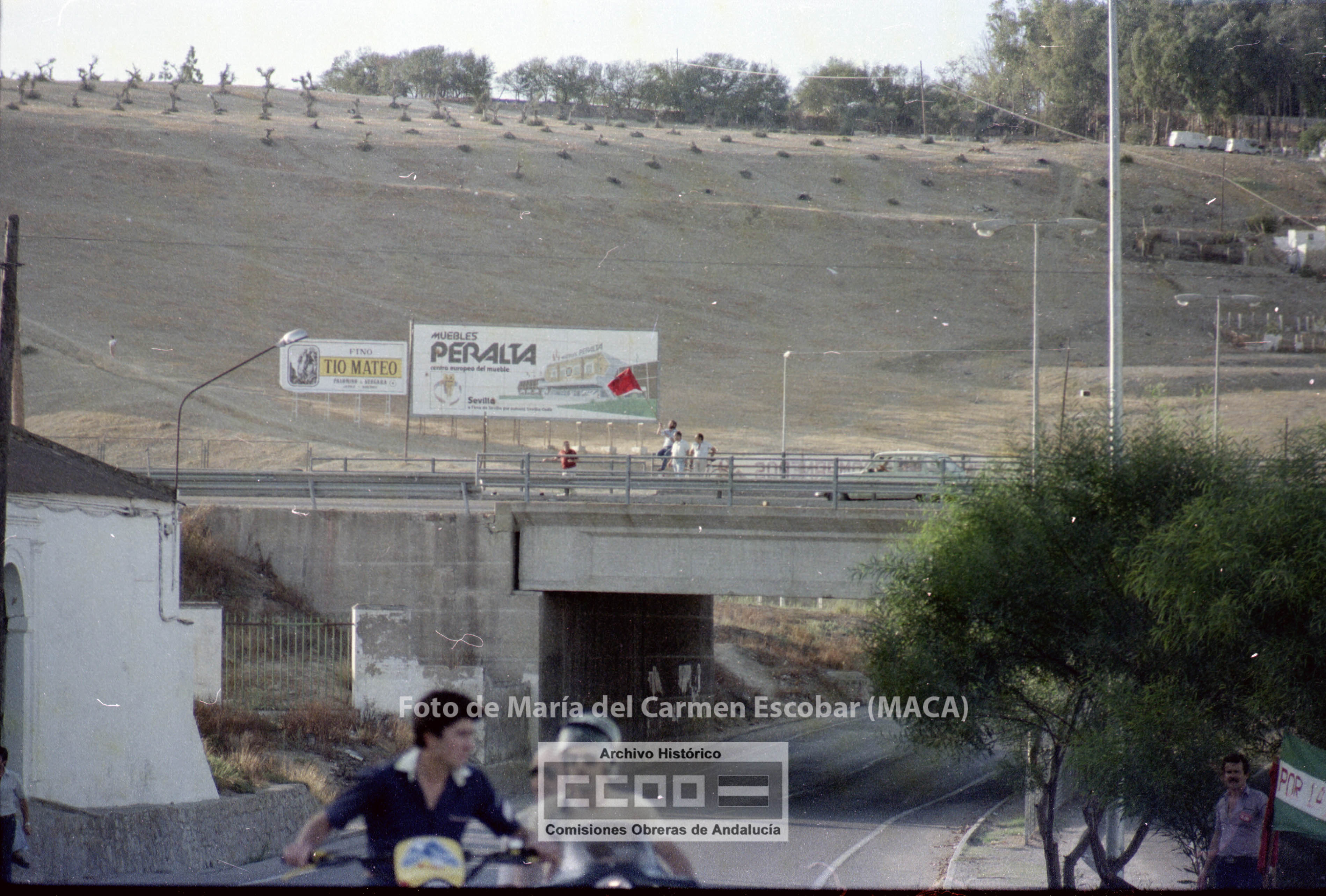 María del Carmen Escobar, MACA, nació en Ayamonte (Huelva) el 5 de diciembre de 1952. Siendo niña su familia fijó la residencia en Sevilla, ciudad en la que viviría el resto de su vida. En 1969 comenzó a trabajar en el Galerías Preciados, donde comenzó su actividad sindical. En 1976 ingresa en las aún clandestinas CCOO de Sevilla. Tras la legalización del sindicato, en abril de 1977, fue contratada por la Unión Provincial de Sevilla. Sus reportajes fotográficos enriquecieron Realidad, periódico emblemático de las CCOO de Sevilla, así como otros órganos de expresión del sindicato. Tanto los conflictos laborales, como la frenética actividad que desarrollaron los movimientos sociales durante los años de la Transición fueron recogidos por la cámara de Maca, por lo que su obra constituye un indispensable repositorio de la memoria gráfica obrera y militante de esos años. Mostró especial interés en fotografiar los actos promovidos por el incipiente movimiento feminista, así como, por destacar la participación de las mujeres en la vida pública. Desde entonces y hasta su temprana muerte en abril de 2013, Maca trabajó para CCOO y para otras entidades, como RTVA, manteniendo siempre un fuerte compromiso con la clase trabajadora. Su fondo fotográfico, formado por más de 20.000 negativos, se conserva en el Archivo Histórico de CCOO de Andalucía y está disponible para su consulta pública