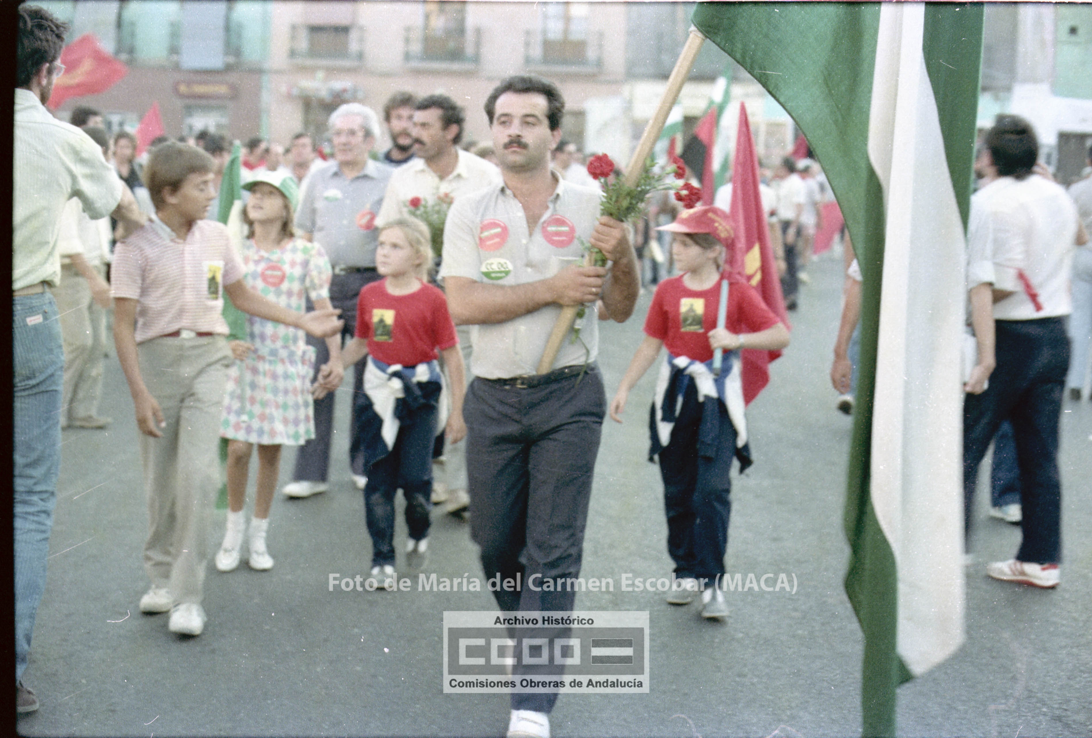 María del Carmen Escobar, MACA, nació en Ayamonte (Huelva) el 5 de diciembre de 1952. Siendo niña su familia fijó la residencia en Sevilla, ciudad en la que viviría el resto de su vida. En 1969 comenzó a trabajar en el Galerías Preciados, donde comenzó su actividad sindical. En 1976 ingresa en las aún clandestinas CCOO de Sevilla. Tras la legalización del sindicato, en abril de 1977, fue contratada por la Unión Provincial de Sevilla. Sus reportajes fotográficos enriquecieron Realidad, periódico emblemático de las CCOO de Sevilla, así como otros órganos de expresión del sindicato. Tanto los conflictos laborales, como la frenética actividad que desarrollaron los movimientos sociales durante los años de la Transición fueron recogidos por la cámara de Maca, por lo que su obra constituye un indispensable repositorio de la memoria gráfica obrera y militante de esos años. Mostró especial interés en fotografiar los actos promovidos por el incipiente movimiento feminista, así como, por destacar la participación de las mujeres en la vida pública. Desde entonces y hasta su temprana muerte en abril de 2013, Maca trabajó para CCOO y para otras entidades, como RTVA, manteniendo siempre un fuerte compromiso con la clase trabajadora. Su fondo fotográfico, formado por más de 20.000 negativos, se conserva en el Archivo Histórico de CCOO de Andalucía y está disponible para su consulta pública