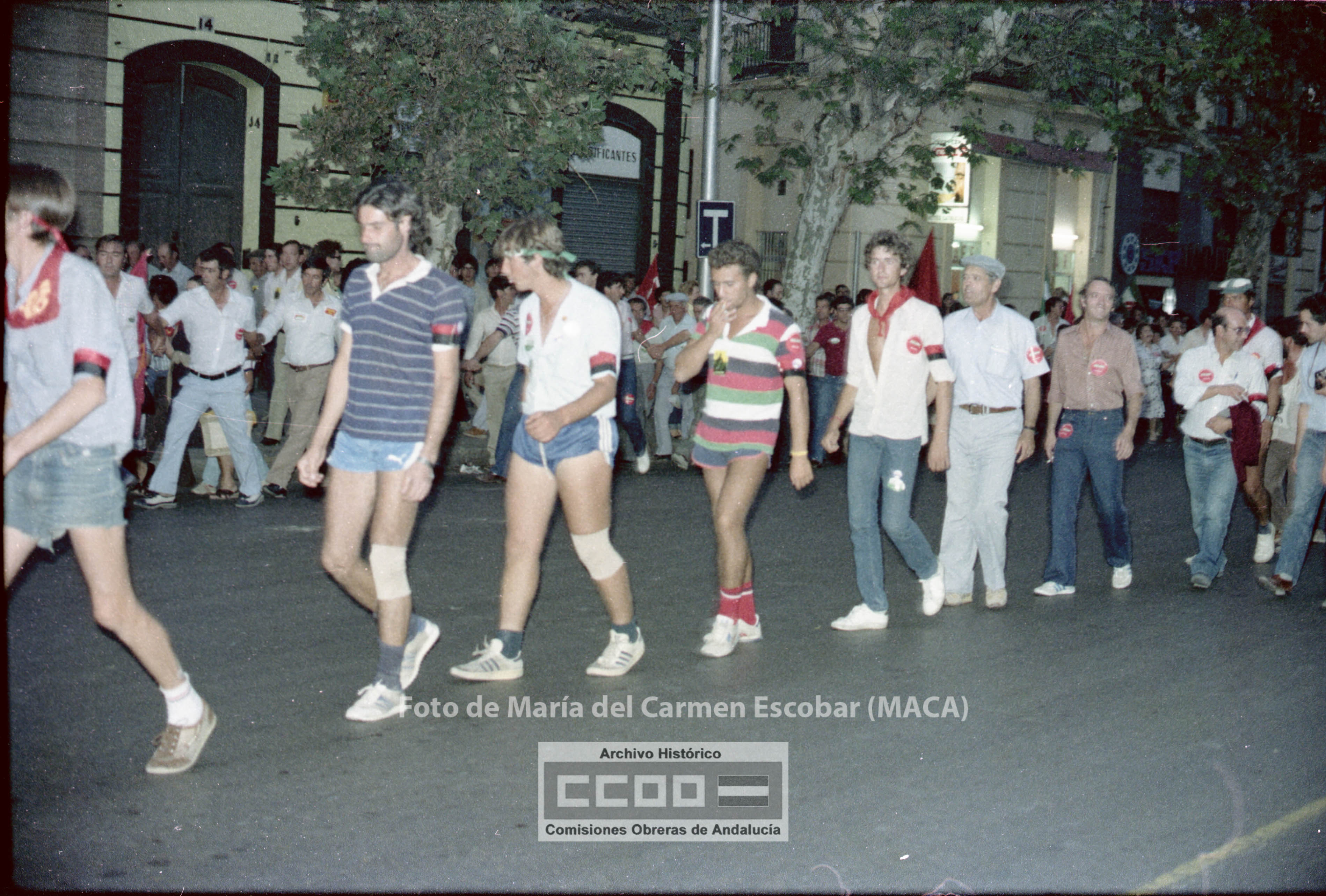 María del Carmen Escobar, MACA, nació en Ayamonte (Huelva) el 5 de diciembre de 1952. Siendo niña su familia fijó la residencia en Sevilla, ciudad en la que viviría el resto de su vida. En 1969 comenzó a trabajar en el Galerías Preciados, donde comenzó su actividad sindical. En 1976 ingresa en las aún clandestinas CCOO de Sevilla. Tras la legalización del sindicato, en abril de 1977, fue contratada por la Unión Provincial de Sevilla. Sus reportajes fotográficos enriquecieron Realidad, periódico emblemático de las CCOO de Sevilla, así como otros órganos de expresión del sindicato. Tanto los conflictos laborales, como la frenética actividad que desarrollaron los movimientos sociales durante los años de la Transición fueron recogidos por la cámara de Maca, por lo que su obra constituye un indispensable repositorio de la memoria gráfica obrera y militante de esos años. Mostró especial interés en fotografiar los actos promovidos por el incipiente movimiento feminista, así como, por destacar la participación de las mujeres en la vida pública. Desde entonces y hasta su temprana muerte en abril de 2013, Maca trabajó para CCOO y para otras entidades, como RTVA, manteniendo siempre un fuerte compromiso con la clase trabajadora. Su fondo fotográfico, formado por más de 20.000 negativos, se conserva en el Archivo Histórico de CCOO de Andalucía y está disponible para su consulta pública