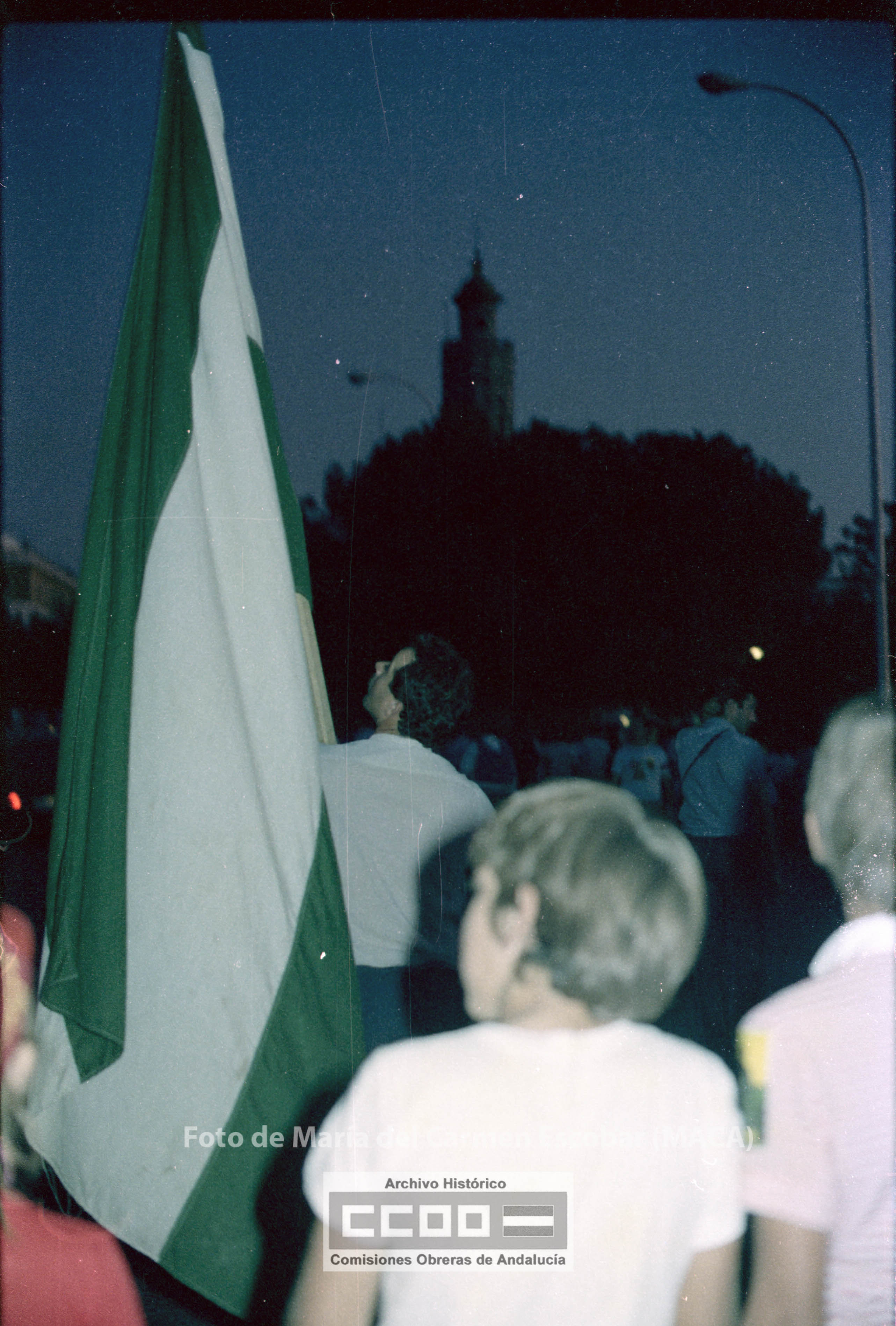 María del Carmen Escobar, MACA, nació en Ayamonte (Huelva) el 5 de diciembre de 1952. Siendo niña su familia fijó la residencia en Sevilla, ciudad en la que viviría el resto de su vida. En 1969 comenzó a trabajar en el Galerías Preciados, donde comenzó su actividad sindical. En 1976 ingresa en las aún clandestinas CCOO de Sevilla. Tras la legalización del sindicato, en abril de 1977, fue contratada por la Unión Provincial de Sevilla. Sus reportajes fotográficos enriquecieron Realidad, periódico emblemático de las CCOO de Sevilla, así como otros órganos de expresión del sindicato. Tanto los conflictos laborales, como la frenética actividad que desarrollaron los movimientos sociales durante los años de la Transición fueron recogidos por la cámara de Maca, por lo que su obra constituye un indispensable repositorio de la memoria gráfica obrera y militante de esos años. Mostró especial interés en fotografiar los actos promovidos por el incipiente movimiento feminista, así como, por destacar la participación de las mujeres en la vida pública. Desde entonces y hasta su temprana muerte en abril de 2013, Maca trabajó para CCOO y para otras entidades, como RTVA, manteniendo siempre un fuerte compromiso con la clase trabajadora. Su fondo fotográfico, formado por más de 20.000 negativos, se conserva en el Archivo Histórico de CCOO de Andalucía y está disponible para su consulta pública