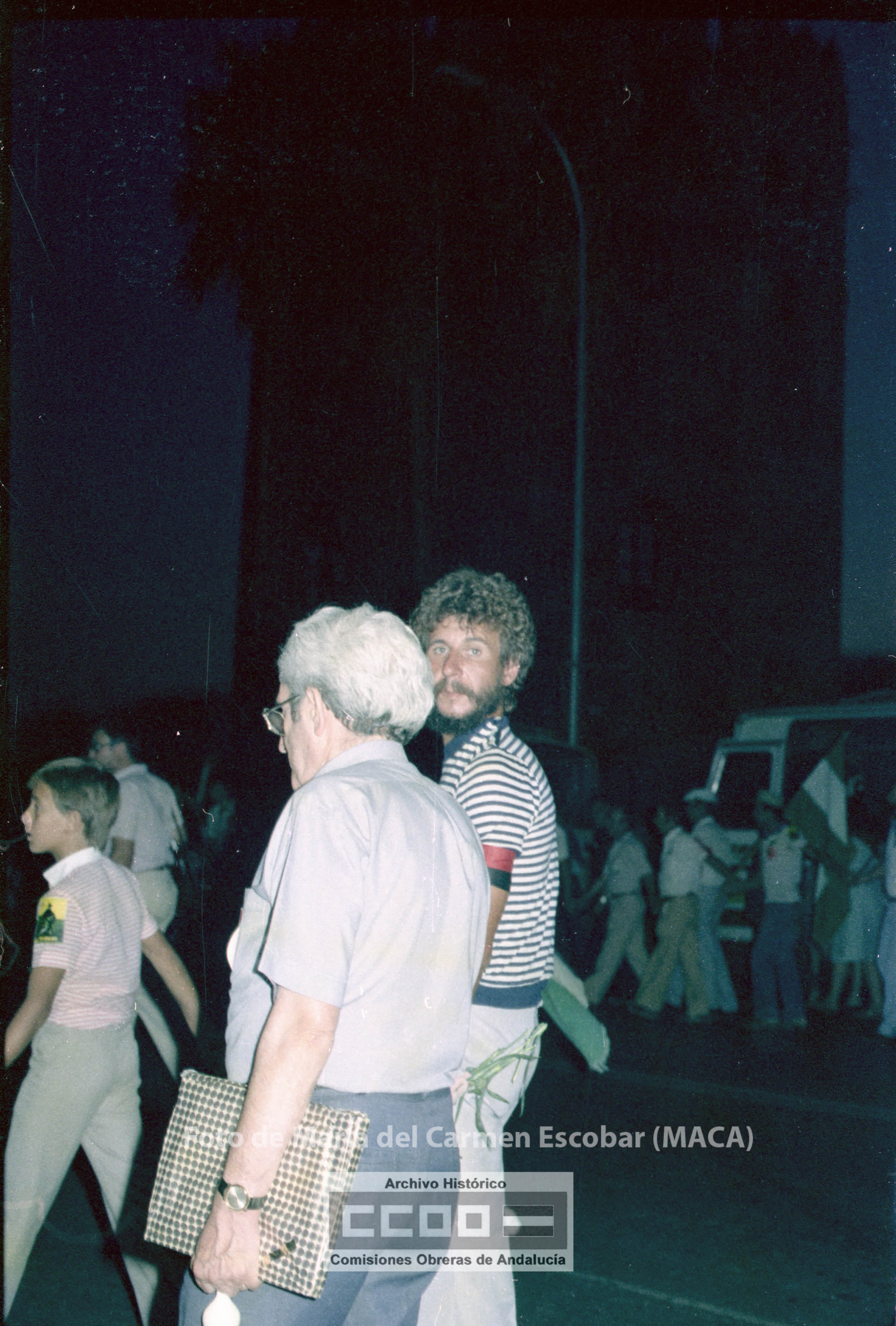 María del Carmen Escobar, MACA, nació en Ayamonte (Huelva) el 5 de diciembre de 1952. Siendo niña su familia fijó la residencia en Sevilla, ciudad en la que viviría el resto de su vida. En 1969 comenzó a trabajar en el Galerías Preciados, donde comenzó su actividad sindical. En 1976 ingresa en las aún clandestinas CCOO de Sevilla. Tras la legalización del sindicato, en abril de 1977, fue contratada por la Unión Provincial de Sevilla. Sus reportajes fotográficos enriquecieron Realidad, periódico emblemático de las CCOO de Sevilla, así como otros órganos de expresión del sindicato. Tanto los conflictos laborales, como la frenética actividad que desarrollaron los movimientos sociales durante los años de la Transición fueron recogidos por la cámara de Maca, por lo que su obra constituye un indispensable repositorio de la memoria gráfica obrera y militante de esos años. Mostró especial interés en fotografiar los actos promovidos por el incipiente movimiento feminista, así como, por destacar la participación de las mujeres en la vida pública. Desde entonces y hasta su temprana muerte en abril de 2013, Maca trabajó para CCOO y para otras entidades, como RTVA, manteniendo siempre un fuerte compromiso con la clase trabajadora. Su fondo fotográfico, formado por más de 20.000 negativos, se conserva en el Archivo Histórico de CCOO de Andalucía y está disponible para su consulta pública