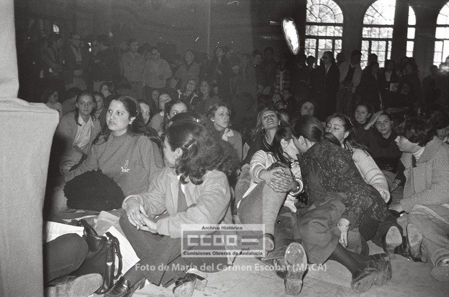 María del Carmen Escobar, MACA, nació en Ayamonte (Huelva) el 5 de diciembre de 1952. Siendo niña su familia fijó la residencia en Sevilla, ciudad en la que viviría el resto de su vida. En 1969 comenzó a trabajar en el Galerías Preciados, donde comenzó su actividad sindical. En 1976 ingresa en las aún clandestinas CCOO de Sevilla. Tras la legalización del sindicato, en abril de 1977, fue contratada por la Unión Provincial de Sevilla. Sus reportajes fotográficos enriquecieron Realidad, periódico emblemático de las CCOO de Sevilla, así como otros órganos de expresión del sindicato. Tanto los conflictos laborales, como la frenética actividad que desarrollaron los movimientos sociales durante los años de la Transición fueron recogidos por la cámara de Maca, por lo que su obra constituye un indispensable repositorio de la memoria gráfica obrera y militante de esos años. Mostró especial interés en fotografiar los actos promovidos por el incipiente movimiento feminista, así como, por destacar la participación de las mujeres en la vida pública. Desde entonces y hasta su temprana muerte en abril de 2013, Maca trabajó para CCOO y para otras entidades, como RTVA, manteniendo siempre un fuerte compromiso con la clase trabajadora. Su fondo fotográfico, formado por más de 20.000 negativos, se conserva en el Archivo Histórico de CCOO de Andalucía y está disponible para su consulta pública